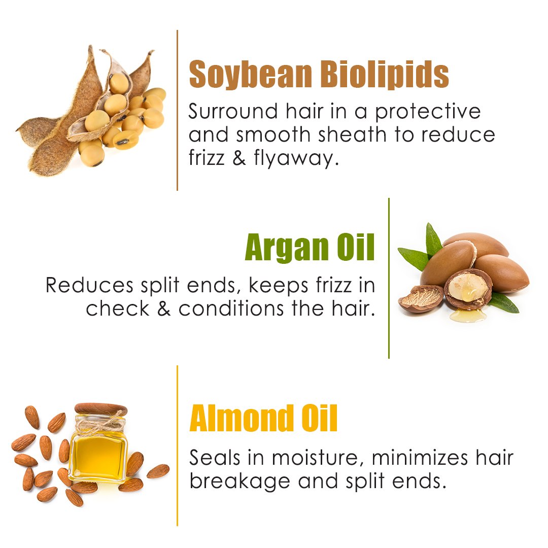 - Powered with concentrated Soybean Biolipids, Argan Oil, Almond Oil & Soybean Oil.