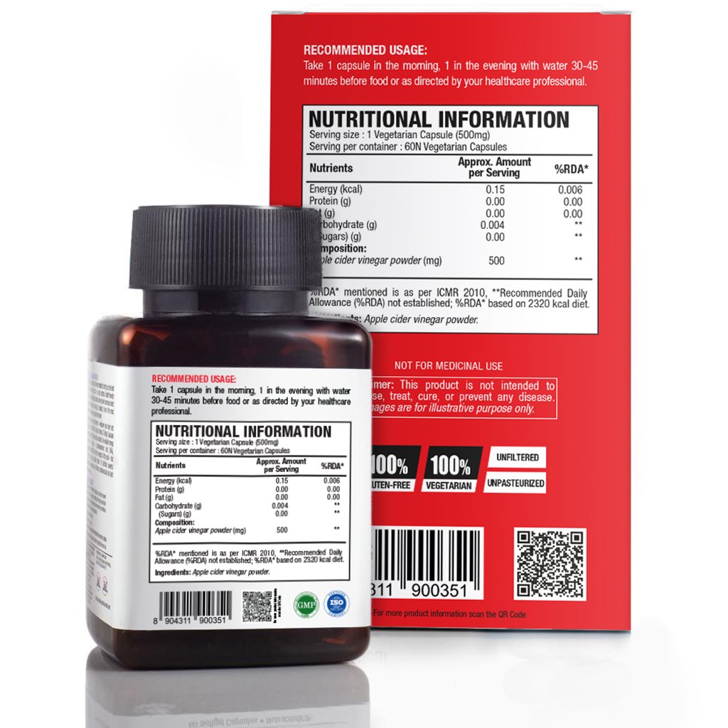 - Packs 60 capsules; with 500 mg of pure ACV powder equivalent to 2 tsp. of liquid apple cider vinegar, per capsule.