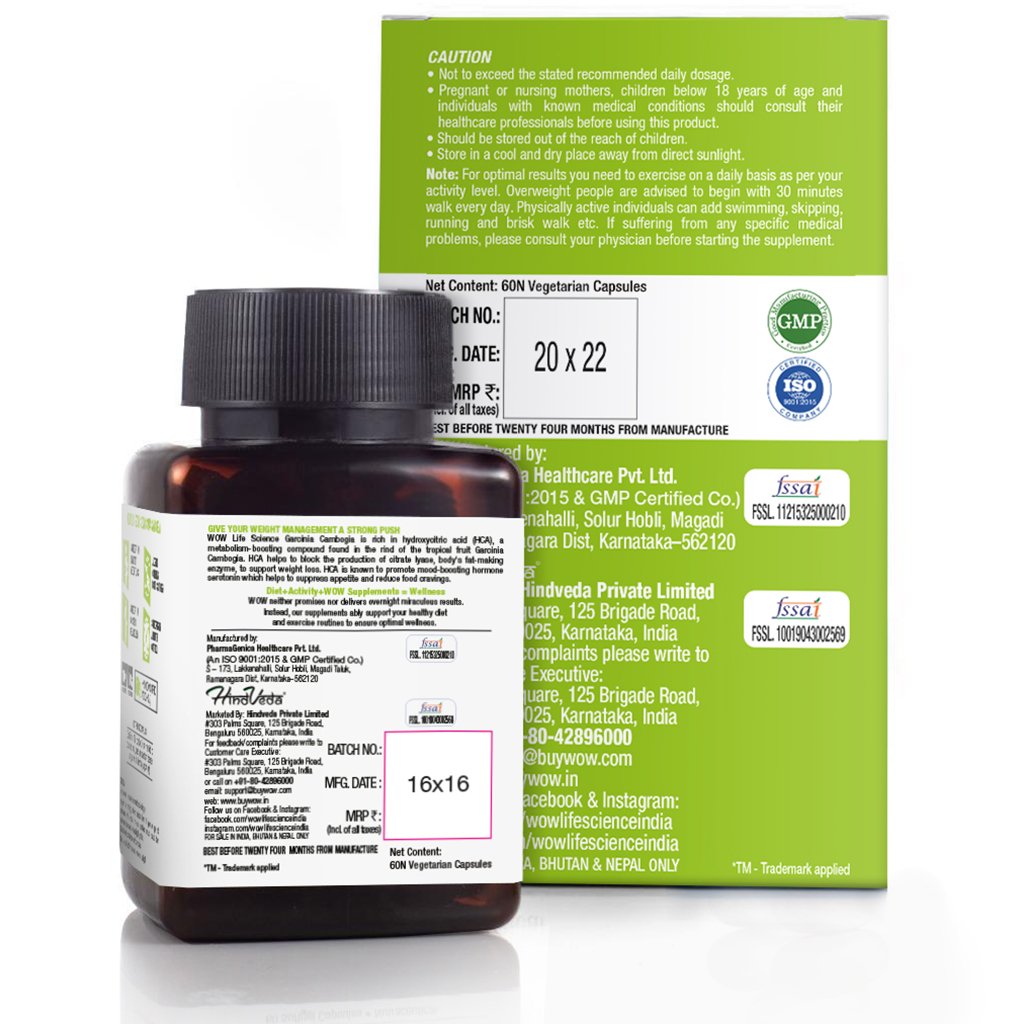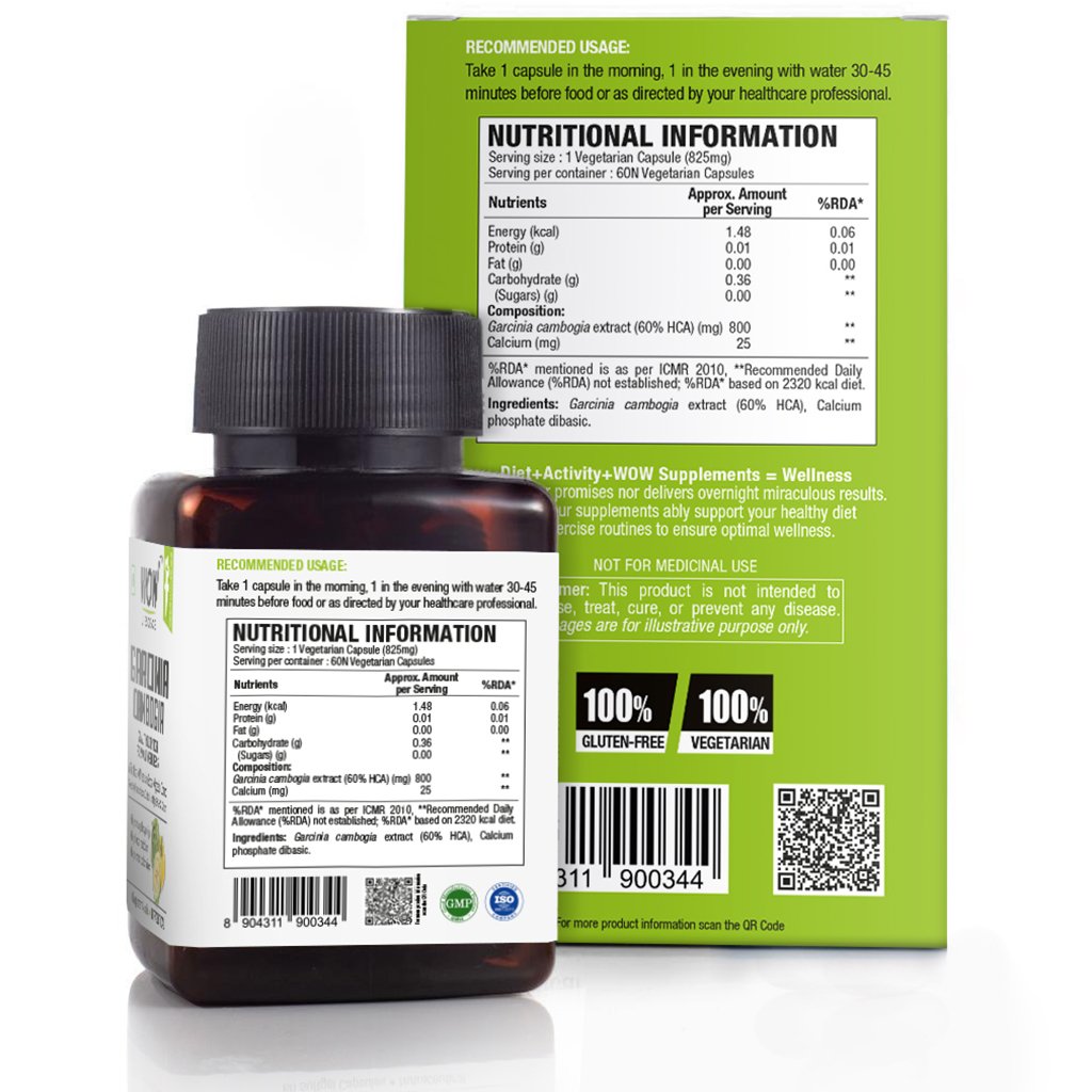 WOW Life Science Garcinia Cambogia is a premium dietary supplement that brings you the health benefits of Hydroxycitric Acid in the form of easy-to-consume capsules. Every WOW Life Science Garcinia Cambogia Capsule delivers 800 mg high-quality extract, with 60% HCA content.