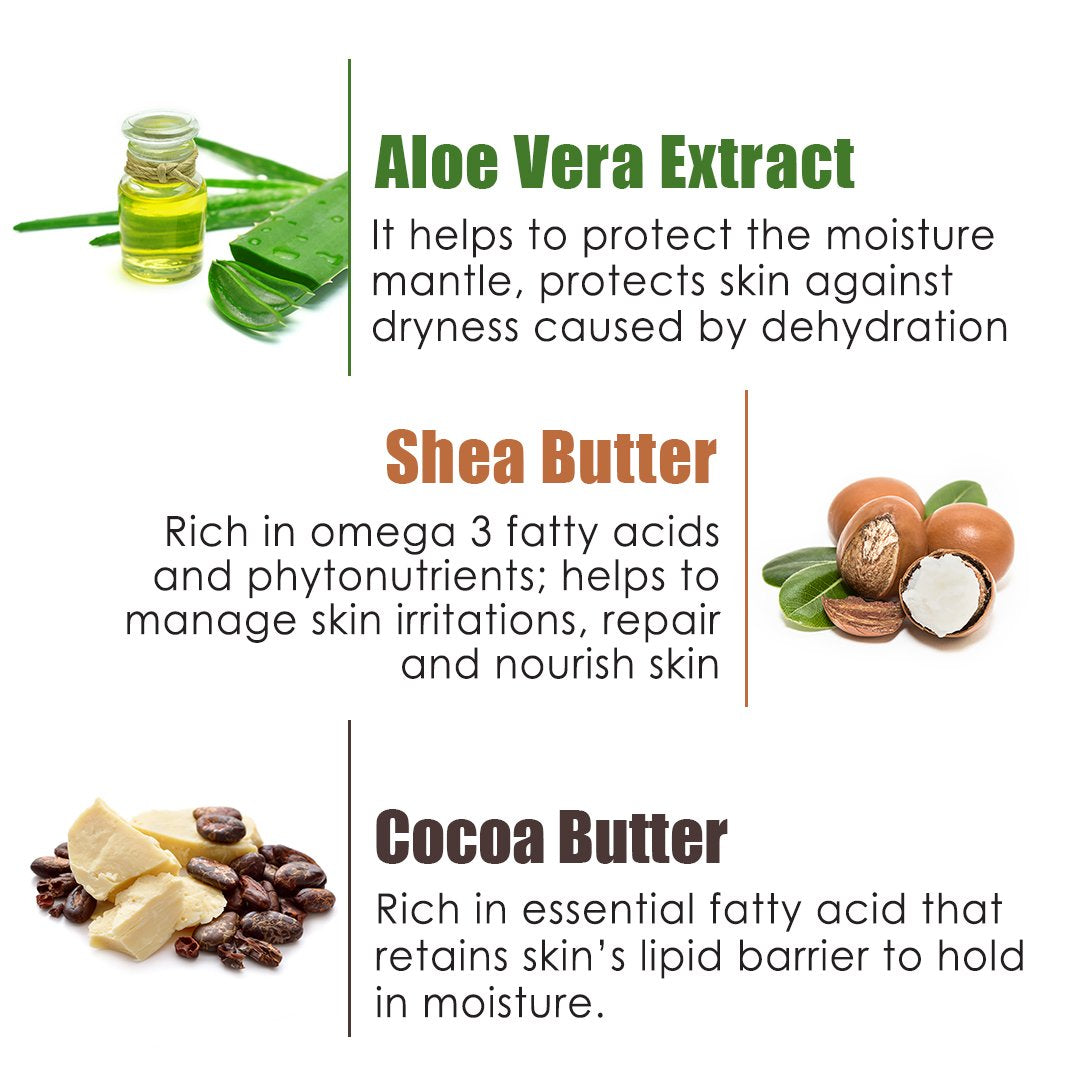 - Formulated with Aloe Vera Extract and Vitamins A, B3, B5, C & E.