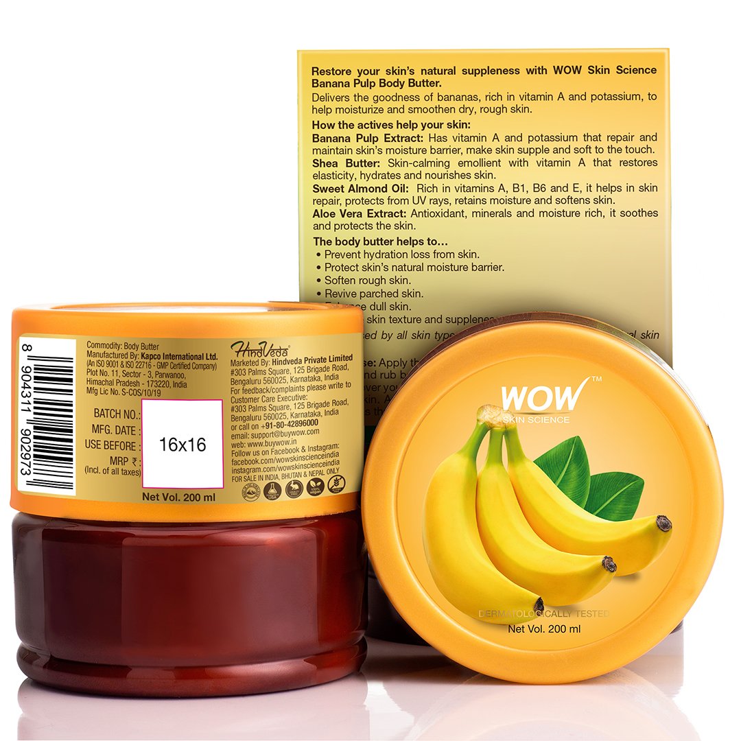 WOW Skin Science Banana Pulp Body Butter - No Parabens, Silicones, Mineral Oil & Color - 200 ml