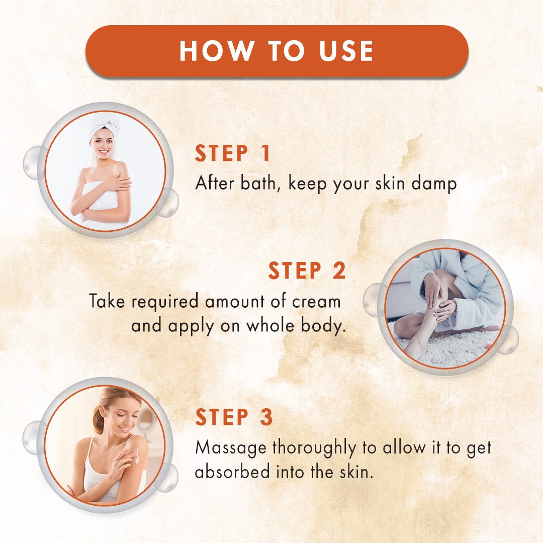 Apply this after your bath. Keep your skin little damp. Take a dollop of this body butter and rub between palm to warm it for spreading it easily on your body.