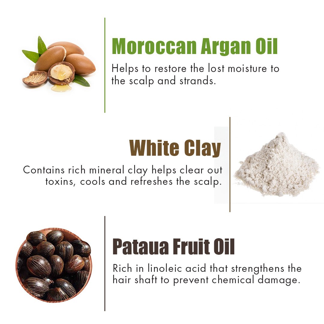 The mineral rich clay helps clear out toxins; cools and refreshes the scalp